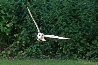 Barn Owls are a pale, medium sized owl (29-44cm length), with a wingspan of 68-105cm. They are normally pale brown in colour with dark speckles. They have a white, heart-shaped face and chest.