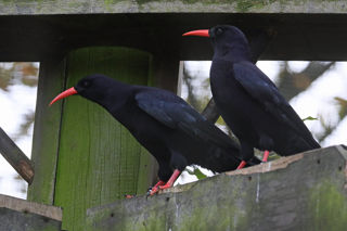 Chough are charismatic birds and can be seen performing excellent acrobatic displays during flight, diving and swooping in the air, with males and females often mirroring each other in their displays.