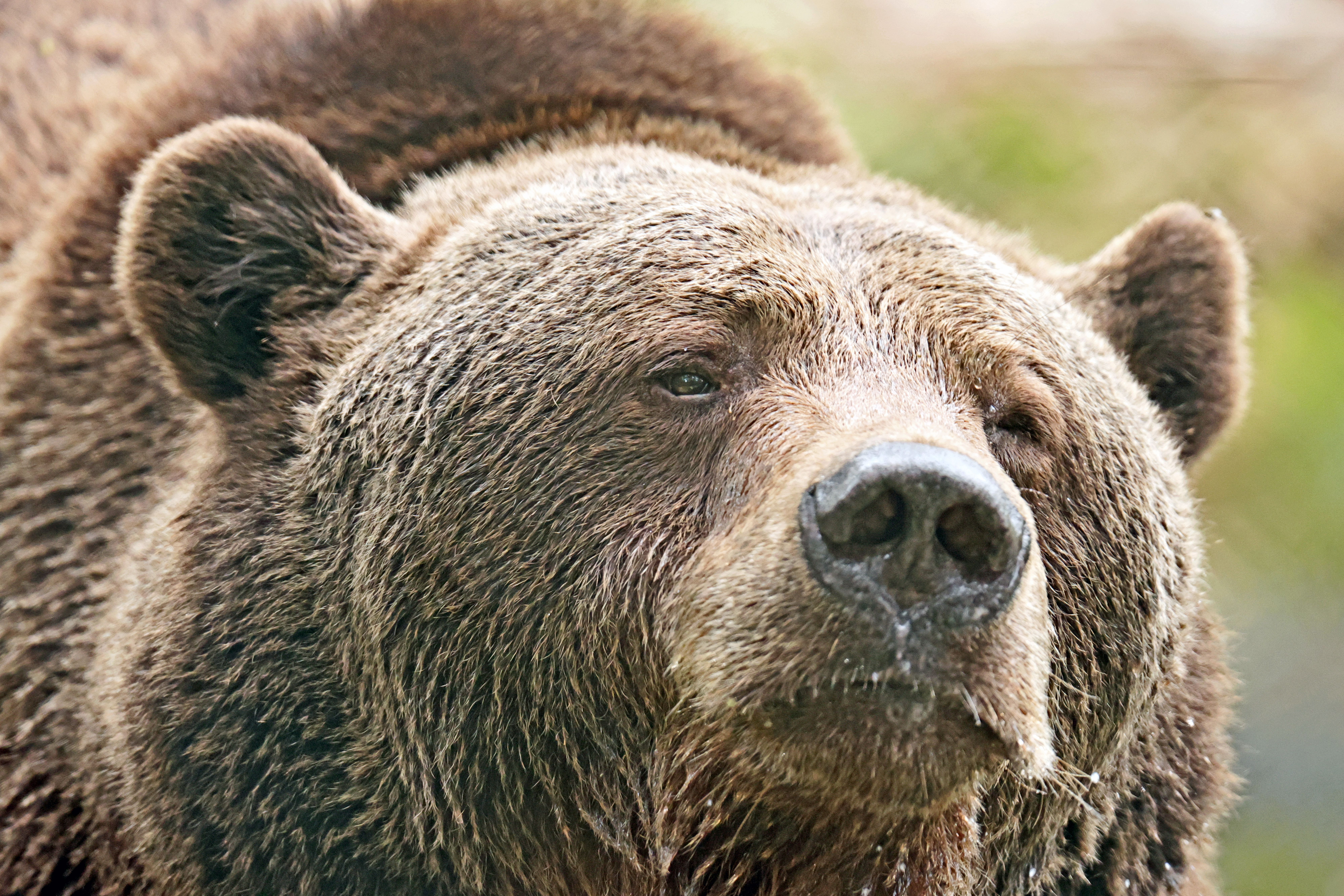 Torpor is a semi-hibernation in which bears conserve energy during a time of scarce food. In the wild, they cushion a den or a cave with grass, leaves, ferns, moss and lichen. Brown bears aren’t true hibernators like hedgehogs. Although their bodily functions slow, they’re easily woken and can defend themselves from attack. It can take up to an hour to wake an animal from hibernation, but bears can wake almost instantly from torpor.