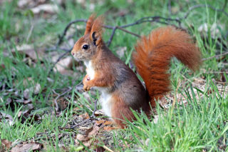Red Squirrels are general, opportunistic, seasonal feeders. The seeds and nuts of conifer and broadleaf trees dominate their diet, however when these are not available a wide variety of food items are selected. In Spring they feed on catkins, tree buds, shoots, and flowers. In the Summer the variety is reduced, and they are known to take insects and occasional bird eggs. Autumn provides the most important feed crop in