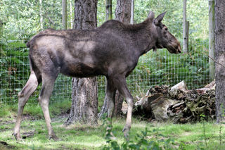The Eurasian elk is the largest member of the deer family. Elk have a heavy body, humped shoulders, long legs and a short tail. They’re easily recognisable by a skin fold under their chin known as a dewlap or bell and by their large, overhanging nose or proboscis, giving rise to a keen sense of smell.
