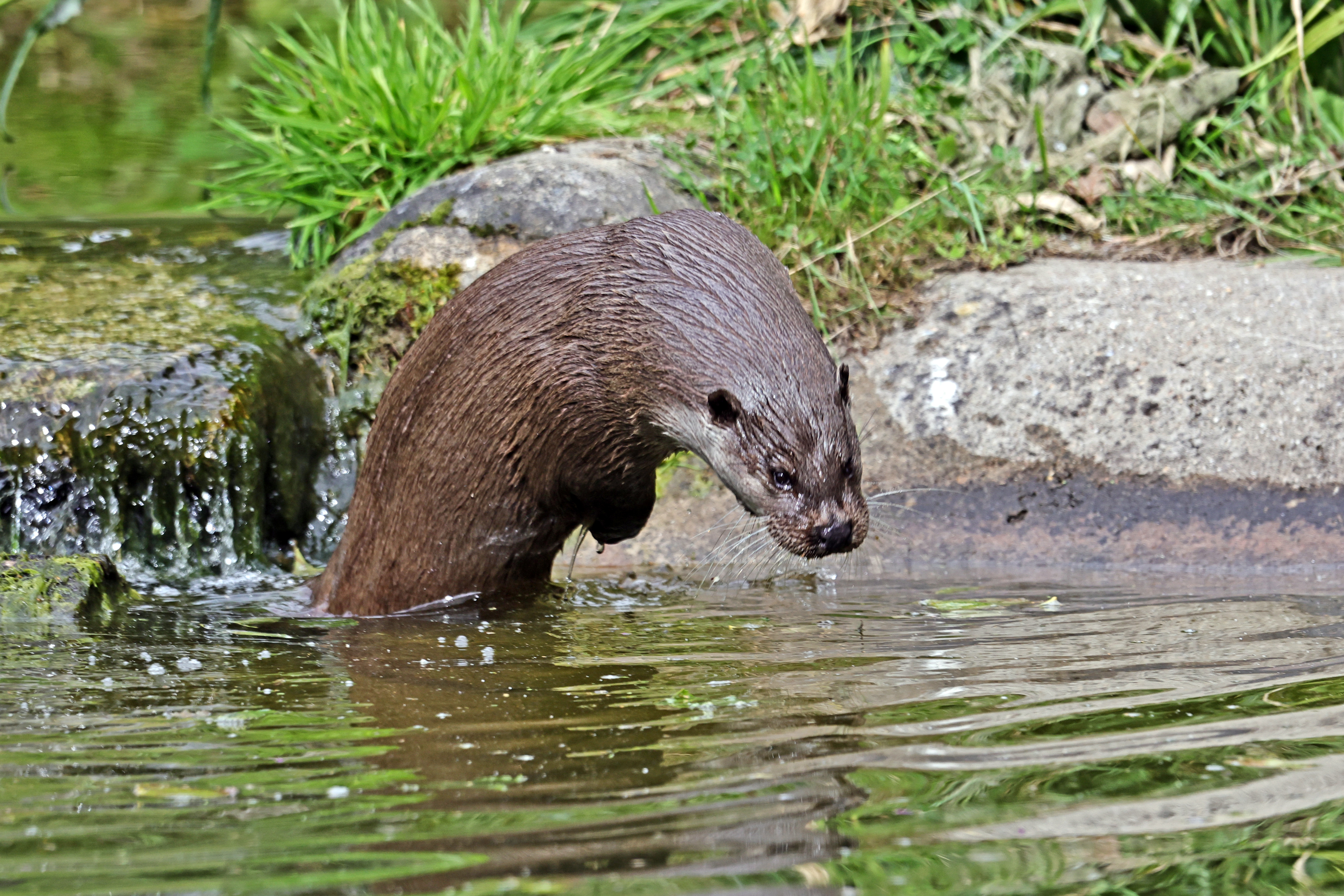 The European otter is a carnivore from the mustelid family. Like most otter species, they are well adapted to a life near water. They have a long, sinous body, webbed feet, and can close their ears and nose when underwater. They can live up to 14 years in captivity, but live an average of 5 years in the wild.